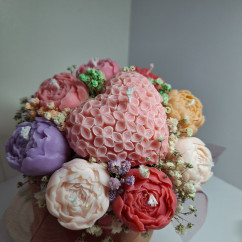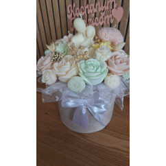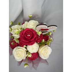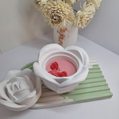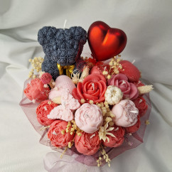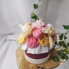 • Kwiaty wykonane z wosku sojowego, w pudełku w kształcie serca,