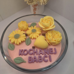 PROSZĘ W KOMENTARZU O WYBÓR KOLORU KWIATÓW ORAZ NAPISU NA ŚWIECY!!