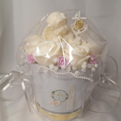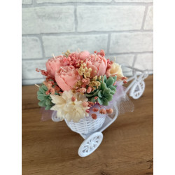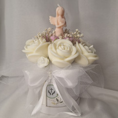• Kwiaty i figurka wykonane z wosku sojowego,